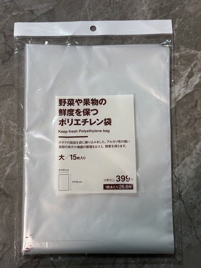 野菜や果物の鮮度を保つポリエチレン袋 大/15枚入り 399円
